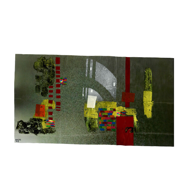 Mixed technique on digitally printed satin with base images extracted from a video recording. Series of 18 works. 23x41cm